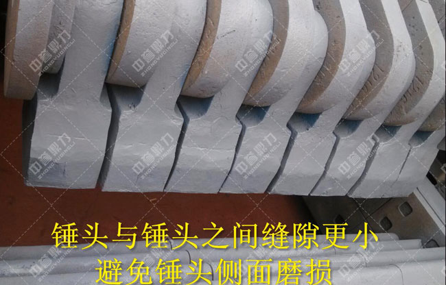 1、配件使用壽命長——主襯板厚度增加,延長使用壽命;錘頭與錘頭之間縫隙更小,避免錘頭側(cè)面磨損;錘盤上安裝護(hù)套;