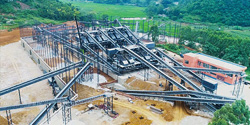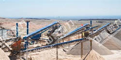 從流程工藝圖可以看到。物料從原料倉進入振動給料,勻速運動的物料被輸送至破碎機進行破碎,一部分破碎物料經(jīng)過振動篩篩分出符合粒度物料,成為普通的成品砂石料。另一部分破碎物料被輸送至中轉(zhuǎn)料倉,可用于進行加工普通成品料的原材料,也可經(jīng)過整形式破碎機破碎,獲得品質(zhì)比較高的砂石骨料。