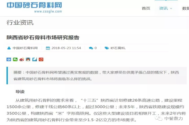 根據(jù)中砂石骨料網(wǎng)新的《陜西省砂石骨料市場研究報(bào)告》,“十三五”陜西省僅大型建設(shè)項(xiàng)目相繼開工,未來2年內(nèi)將為陜西省的建筑用砂石骨料行業(yè)帶來至少1.5-2億立方的市場需求。與此2018年4月8日,陜西省土資源廳再次下發(fā)《陜西省土資源廳關(guān)于進(jìn)一步采取措施保障石料市場供應(yīng)的通知》,指出西安、渭南,指出兩市砂石供應(yīng)仍有較大缺口。