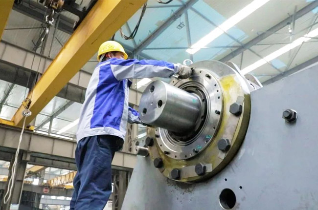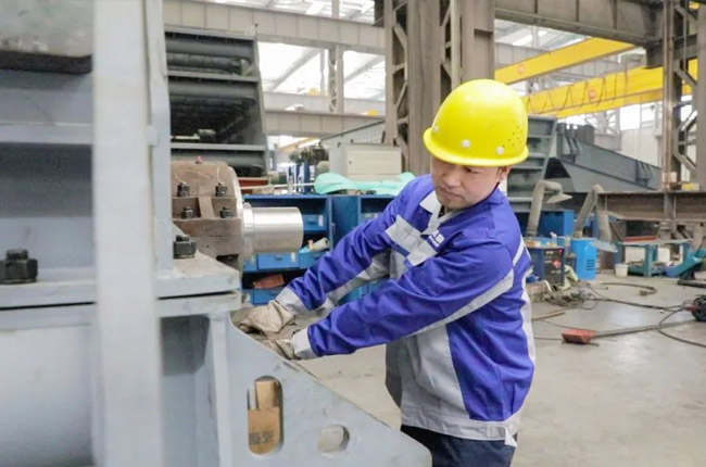 采訪第一事業(yè)部成裝組裝配員工馮浩然的時候,他正在裝配一臺即將發(fā)貨的DLEV125顎式破碎機(jī),從液壓充氣到壓蓋組裝,安裝30個螺絲,只需短短2-3分鐘的時間。用尺子測量軸承間距,進(jìn)行反復(fù)對比,裝配完成后,對零件的相互位置、配合間隙、松緊情況等進(jìn)行調(diào)整,然后再進(jìn)行面的精度檢驗,后進(jìn)行試運行,面檢查機(jī)器運轉(zhuǎn)的靈活性、密封性、轉(zhuǎn)速、功率等各項功能。