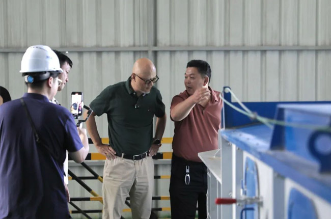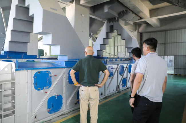 在項(xiàng)目輸送車間,考察團(tuán)成員著重了解了中譽(yù)鼎力創(chuàng)新產(chǎn)品箱式皮帶輸送機(jī)及其優(yōu)勢(shì),點(diǎn)贊該設(shè)備環(huán)保、省錢省力。
