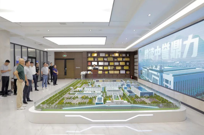 在中譽(yù)鼎力智能裝備廠區(qū),砂石骨料網(wǎng)考察團(tuán)先后參觀了集團(tuán)發(fā)展歷程墻、企業(yè)文化墻、綠色建材工業(yè)互聯(lián)網(wǎng)大數(shù)據(jù)中心和多位一體循環(huán)建材產(chǎn)業(yè)園項(xiàng)目沙盤等,對(duì)中譽(yù)鼎力主營業(yè)務(wù)及產(chǎn)品服務(wù)有了更進(jìn)一步的了解。
