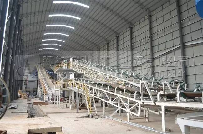 石料破碎后由皮帶輸送機輸送到封閉生產(chǎn)車間內(nèi)進行二次破碎加工生產(chǎn)。