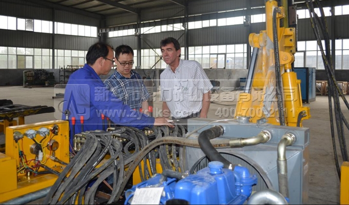 Colin 和 Craigo要為其公司選購(gòu)能同時(shí)左右平移及左右偏移角度的鉆機(jī)設(shè)備,其之前已準(zhǔn)備購(gòu)買德的某種鉆機(jī),但終因其高額的價(jià)格而退避三舍,為此他們來到中尋找類似德鉆機(jī)的廠家。在參觀廠房及鉆機(jī)廠并親眼看到鉆機(jī)運(yùn)行后,客戶表現(xiàn)出了大的好奇和興趣,并與工程師交流了一些技術(shù)問題和要求。得到滿意的回答后進(jìn)而與外貿(mào)經(jīng)理溝通具體的合作事宜。