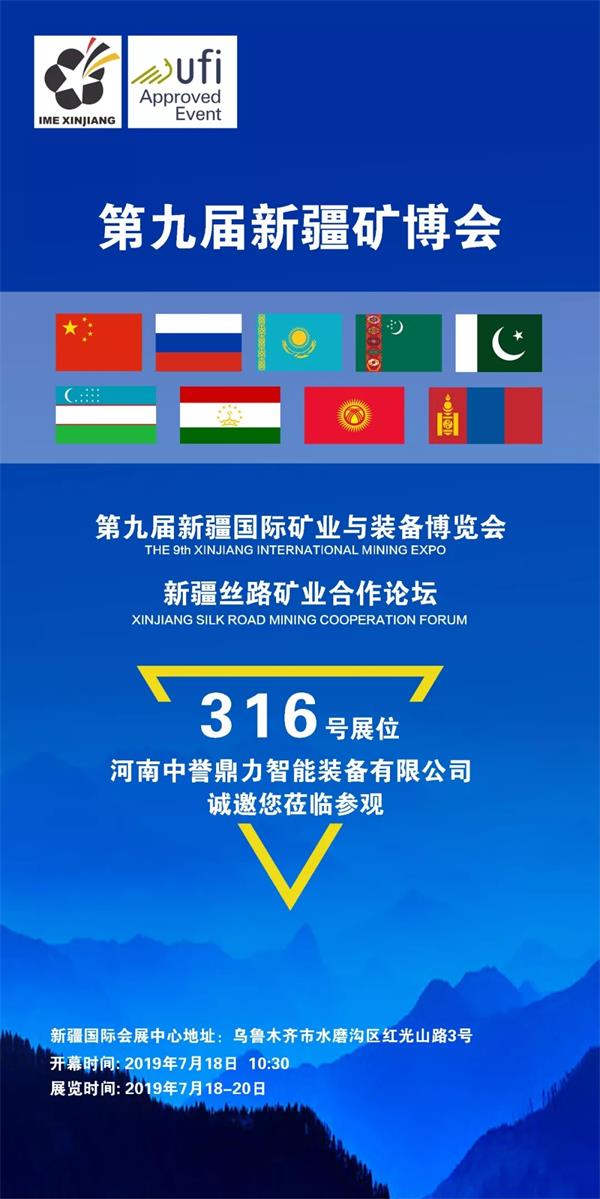 摘要:第九屆新疆礦博會(huì)暨新疆絲路礦業(yè)合作論壇將于2019年7月18日在新疆際會(huì)展開(kāi)幕,為期三天。河南中譽(yù)鼎力智能裝備有限公司為316號(hào)展位,邀您蒞臨參觀。