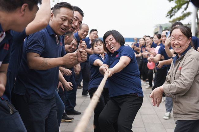 而在團(tuán)體賽環(huán)節(jié),一圈到底的默契傳遞、蜈蚣競(jìng)走的嚴(yán)謹(jǐn)配合以及拔河大對(duì)抗的群體力量博弈……無(wú)一不彰顯出鼎力人團(tuán)結(jié)協(xié)作、敢于爭(zhēng)先的奮斗精。