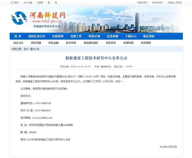 根據《河南省科技創(chuàng)新平臺建設與管理辦法(試行)》(豫科〔2016〕83號)規(guī)定,經單位申請、主管部門審核、評審、河南省科學技術廳廳長辦公會研究等程序,12月10日,省科學技術廳基礎研究院在河南科技網對擬新建省工程技術研究名單進行公示。