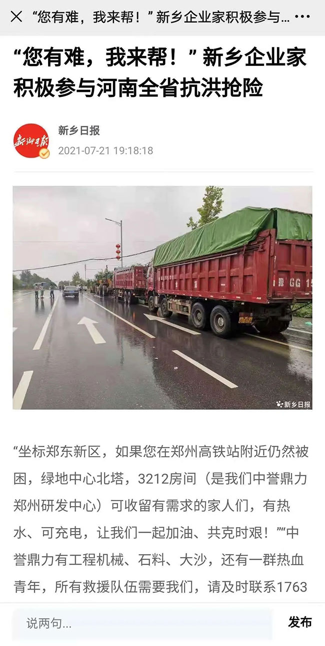 中譽(yù)鼎力從上到下踴躍參與防汛救災(zāi)工作,被新鄉(xiāng)日報等媒體報道。
