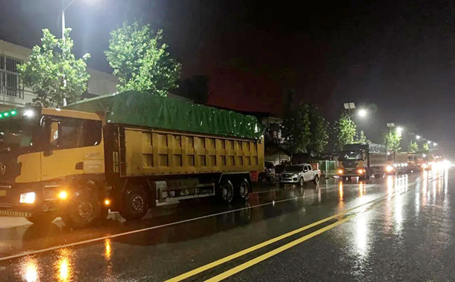 7月21日傍晚,暴雨突襲新鄉(xiāng)和衛(wèi)輝。在中譽(yù)鼎力總經(jīng)理?xiàng)钋闹笓]下,多輛載滿防汛用沙的貨車停駐在衛(wèi)輝市寶塔東路孟姜女河河堤上,嚴(yán)陣以待投入河道防汛救災(zāi)工作。