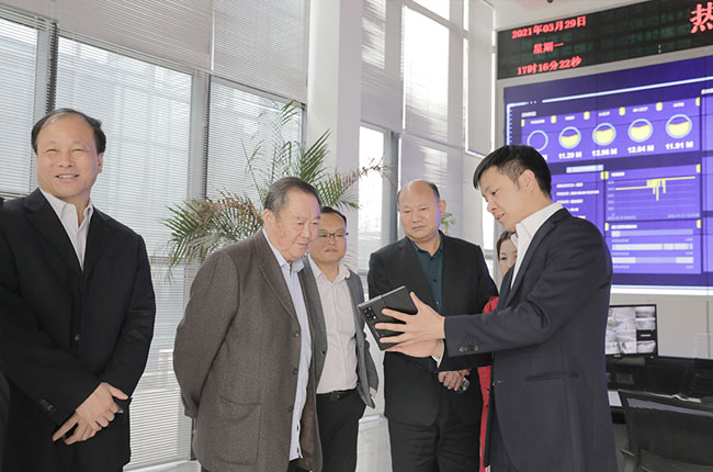 張鐵崗院士一行先來到由中譽鼎力投資建設的多位一體循環(huán)建材產業(yè)園項目實踐基地——衛(wèi)輝市藍天環(huán)保材料有限公司“四位一體”大型建材項目調研,深入了解建材生產智能管理模式。