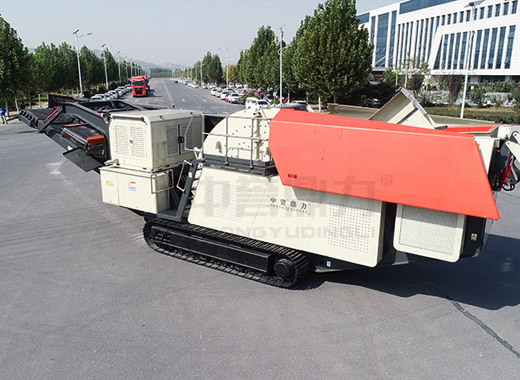 履帶式移動破碎站的破碎、篩分、液壓、發(fā)動機等模塊均安裝在移動底盤上,可以在普通公路和較復(fù)雜地區(qū)靈活移動