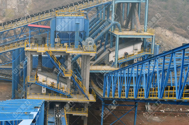 • 設備配置:振動給料機ZGC2050*2臺、重型錘式反擊破碎機PCZ1820*2臺、整形錘式破碎機PC1220*2臺、振動篩3YKZ3070*12臺、除塵設備等