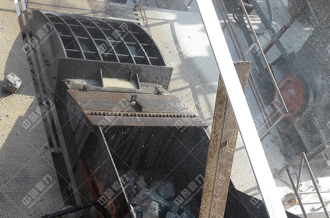 粗碎——原料經(jīng)振動給料機(jī)均勻的送到重型錘式反擊破碎機(jī)PCZ1615進(jìn)行加工破碎