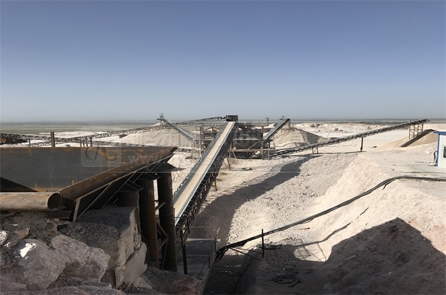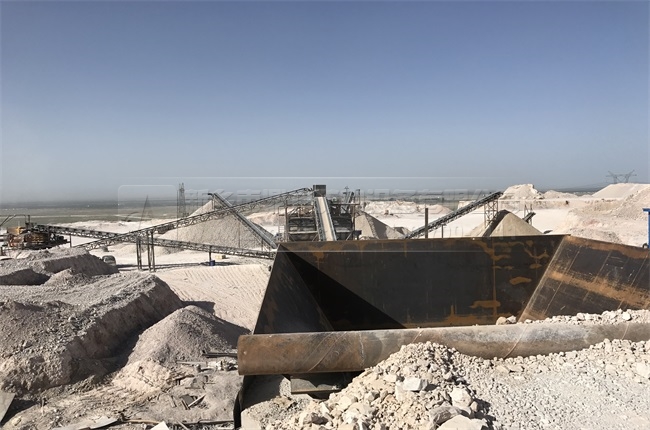 與純石灰?guī)r相比,化工石灰?guī)r含鈣量較高,一般呈致密塊狀產(chǎn)出,顏色常為灰白、淺灰、灰色、深灰及淺黃、淺紅等,一般采用露天開采,電鏟汽車皮帶運(yùn)輸,選礦采用破碎篩分方法。在這條時產(chǎn)500噸破石子生產(chǎn)線圖片中我們可以看到,石灰石被均勻的輸送到入料倉內(nèi),依次經(jīng)過振動給料機(jī)、破碎機(jī)、振動篩加工處理成客戶需要的石子規(guī)格。