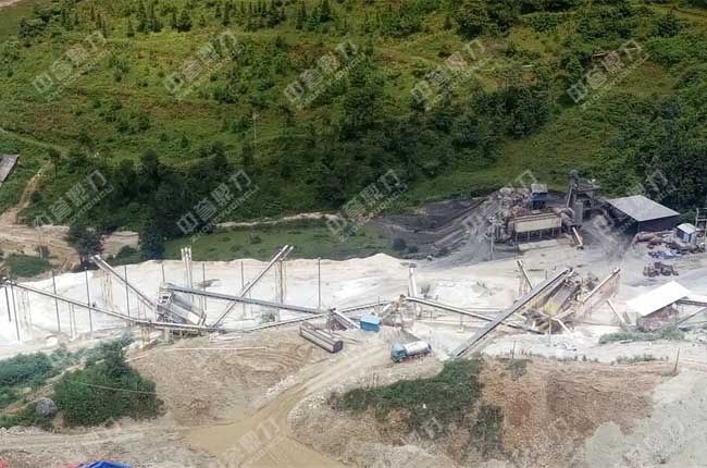 ZG1550振動給料機(jī)將大塊物料均勻、連續(xù)的送至一臺PCZ1615重錘式破碎機(jī)進(jìn)行粗碎,粗碎后的物料由一道并篩,也就是兩臺3YKQ2470振動篩進(jìn)行篩分,篩分出來的大塊物料由皮帶輸送機(jī)送到XPC1216錘式破碎機(jī)進(jìn)行進(jìn)一步破碎,再由皮帶輸送機(jī)送至4YKQ2670進(jìn)行篩分,篩分出1-3、1-2石子、瓜米石和0-5等不同規(guī)格,其中篩分出來的0-5mm的機(jī)制砂被送至XS3016輪式洗砂機(jī)進(jìn)行清洗。