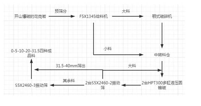2、花崗巖時(shí)產(chǎn)500噸的砂石生產(chǎn)線——破碎