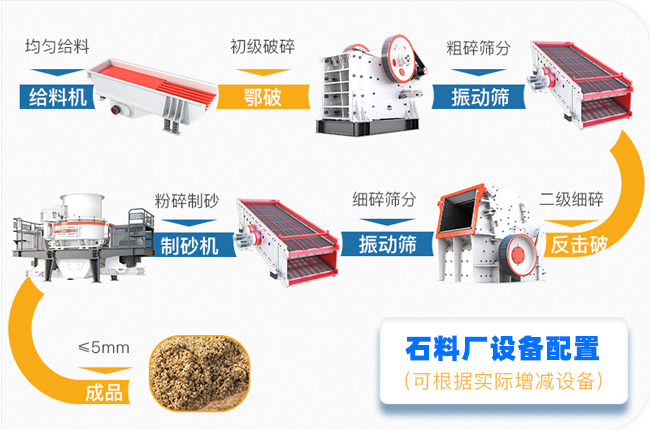 一般制砂生產(chǎn)線需要用到給料機(jī)、破碎機(jī)、篩分機(jī)、制砂機(jī)、輸送機(jī)、洗砂機(jī)等。依照不同用戶的原料、產(chǎn)能、出料、場(chǎng)地、預(yù)算等不同,以下就沖擊式制砂機(jī)成套設(shè)備中的主要設(shè)備進(jìn)行介紹: