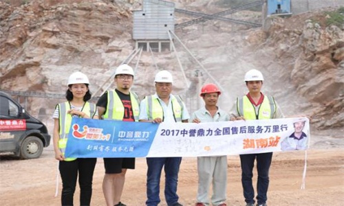 第二站益陽市東方石料廠劉廠長說:中譽鼎力的錘式破碎機設備質量好,機器表現(xiàn)不錯,運行一年多幾乎沒有磨損。湖南服務的服務工作到位,會不定期地主動來到生產(chǎn)線現(xiàn)場查看設備狀況,并及時反饋信息。他們認真周到的服務讓我們很感動。