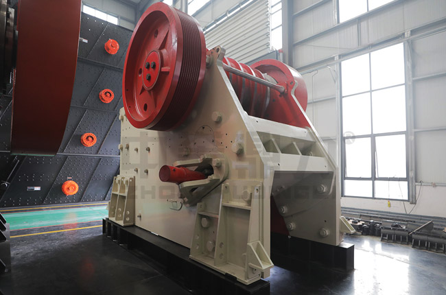 電動(dòng)機(jī)驅(qū)動(dòng)皮帶和皮帶輪,通過偏心軸使動(dòng)顎上下運(yùn)動(dòng),當(dāng)動(dòng)顎上升時(shí)肘板與動(dòng)顎間夾角變大,從而推動(dòng)動(dòng)顎板向固定顎板接近,與其同時(shí)物料被壓碎或劈碎,達(dá)到破碎的目的;當(dāng)動(dòng)顎下行時(shí),肘板與動(dòng)顎夾角變小,動(dòng)顎板在拉桿,彈簧的作用下,離開固定顎板,此時(shí)已破碎物料從破碎腔下口排出。