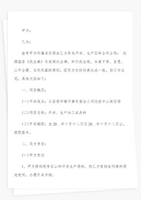 8、甲方應(yīng)按雙方合同擬定產(chǎn)量銷售,合同期滿,未銷售的剩余石料應(yīng)結(jié)算給乙方。