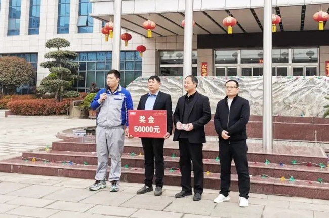 為了進(jìn)一步鼓勵(lì)廣大鼎力員工積創(chuàng)新,推動(dòng)車間生產(chǎn)降本增效,提升礦山設(shè)備成品質(zhì)量,3月20日晨會(huì)期間,中譽(yù)鼎力總經(jīng)理?xiàng)钋砉緦Α澳ゴ布几摹表?xiàng)目團(tuán)隊(duì)獎(jiǎng)勵(lì)現(xiàn)金50000元,毛寶華、王衛(wèi)生、桂禮明作為“技改先鋒”代表領(lǐng)獎(jiǎng)。