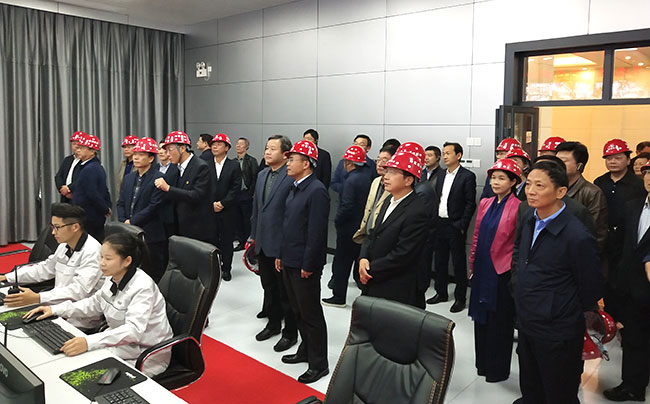隨后,觀摩團(tuán)一行視察了安裝有智能化管理系統(tǒng)、中控大屏的生產(chǎn)線中控室,并觀看了企業(yè)宣傳片。