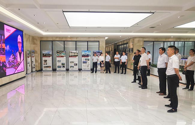 在中譽(yù)鼎力智能裝備有限公司綜合辦公樓,移動(dòng)公司考察團(tuán)先后參觀了中譽(yù)鼎力企業(yè)文化墻、礦山管理云數(shù)據(jù)和多位一體循環(huán)建材產(chǎn)業(yè)園項(xiàng)目沙盤,對(duì)中譽(yù)鼎力主營(yíng)業(yè)務(wù)及近年來發(fā)展情況有了進(jìn)一步了解。
