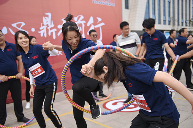 而在團(tuán)體賽環(huán)節(jié),一圈到底的默契傳遞、蜈蚣競(jìng)走的嚴(yán)謹(jǐn)配合以及拔河大對(duì)抗的群體力量博弈……無(wú)一不彰顯出鼎力人團(tuán)結(jié)協(xié)作、敢于爭(zhēng)先的奮斗精。