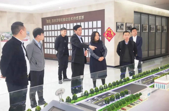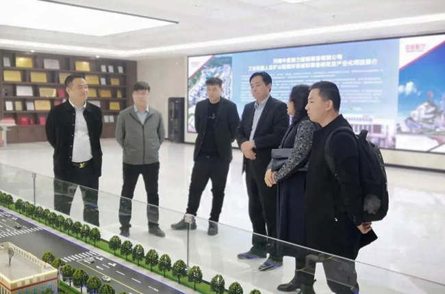 在中譽(yù)鼎力智能裝備有限公司綜合辦公樓,考察團(tuán)先后參觀了中譽(yù)鼎力發(fā)展歷程文化墻、多位一體循環(huán)建材產(chǎn)業(yè)園項(xiàng)目沙盤,并觀看了公司相關(guān)宣傳片,對(duì)中譽(yù)鼎力主營(yíng)業(yè)務(wù)及近年來(lái)發(fā)展情況有了進(jìn)一步了解。