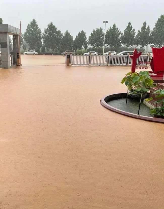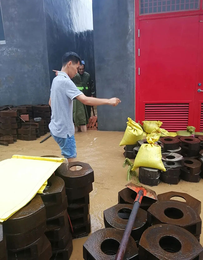 廠區(qū)降水同樣嚴(yán)重,在崗的鼎力人已盡力守住車間倉庫