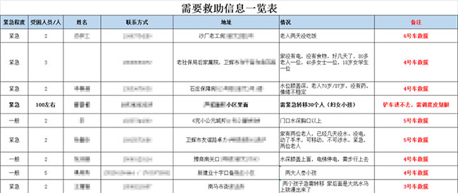 自7月23日早上起,在中譽鼎力董事長張治民、總經理楊乾,藍天環(huán)保副董事長趙銳、總經理耿強、銷售總監(jiān)朱濤等導的指揮下,公司行政部門開始統(tǒng)計大家在社交平臺上收集的受災群眾信息。