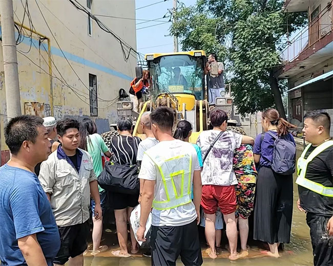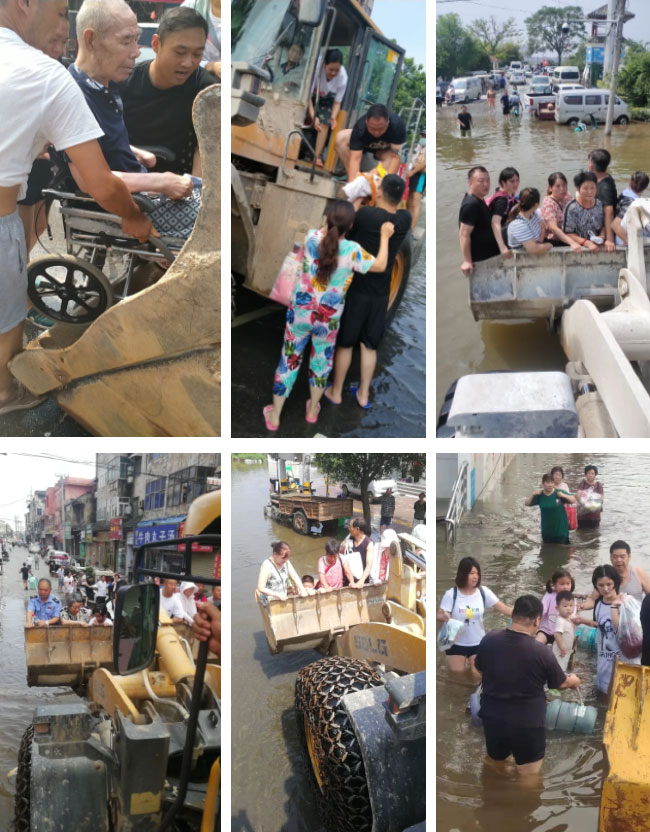 企管部長吳澤朋組織中譽鼎力抗洪救援隊迅速集合出發(fā),駕駛機械車輛、救援鏟車,攜帶皮劃艇、防汛砂等救援器材和方便面、飲用水等救災物資,趕赴受災群眾家中,與救援團隊一起并肩作戰(zhàn),進行緊急救援。