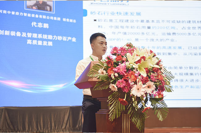 中譽鼎力銷售副總監(jiān)代志鵬以“創(chuàng)新裝備及管理系統(tǒng)助力砂石產(chǎn)業(yè)高質(zhì)量發(fā)展”為主題,就行業(yè)發(fā)展背景、公司創(chuàng)新設備、轉(zhuǎn)型升級定位和智能管理平臺等內(nèi)容展開精彩演講,與大家進行業(yè)務分享和交流。