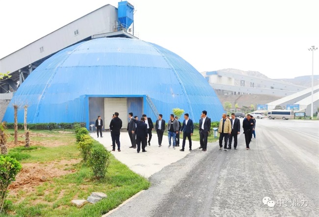 考察團先后參觀了時產(chǎn)3000噸砂石骨料生產(chǎn)線和中譽鼎力EPC總承包建設的衛(wèi)輝市藍天環(huán)保材料有限公司“多位一體”項目。