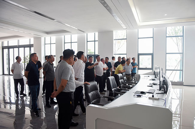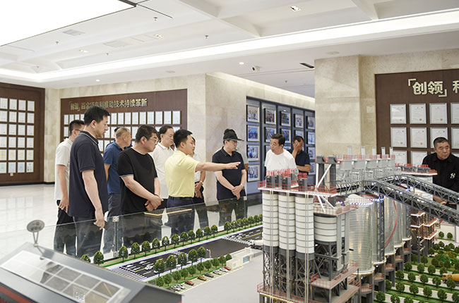 隨后,考察團一行來到河南中譽鼎力智能裝備有限公司,實地參觀了中譽鼎力綠色建材工業(yè)互聯(lián)網(wǎng)大數(shù)據(jù)中心和多位一體循環(huán)建材產(chǎn)業(yè)園項目沙盤,對公司礦山智能管理系統(tǒng)研發(fā)及綠色建材項目承建運營等業(yè)務(wù)有了進一步了解。