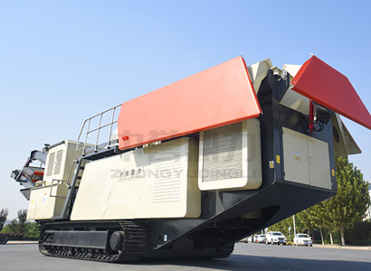 履帶式移動破碎站的破碎、篩分、液壓、發(fā)動機等模塊均安裝在移動底盤上,可以在普通公路和較復(fù)雜地區(qū)靈活移動