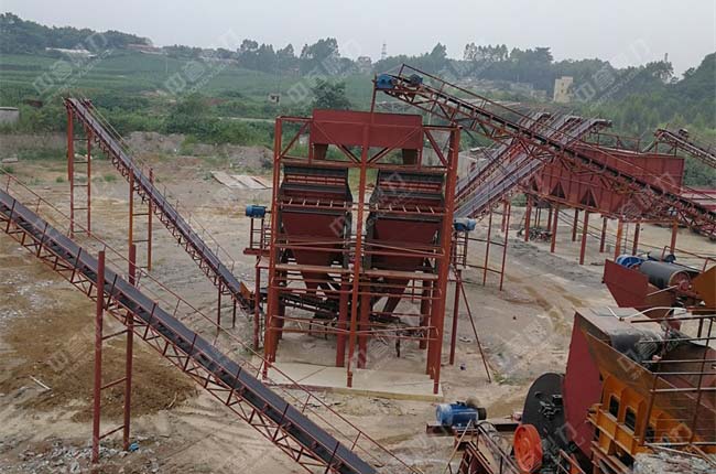 廣西柳州柳江縣柳興竹篙山采石場(chǎng)時(shí)產(chǎn)800噸砂石生產(chǎn)線-篩分
