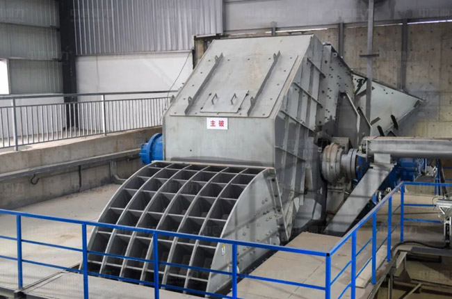 01、礦石通過(guò)板喂機(jī)進(jìn)入重錘破進(jìn)行初級(jí)破碎;