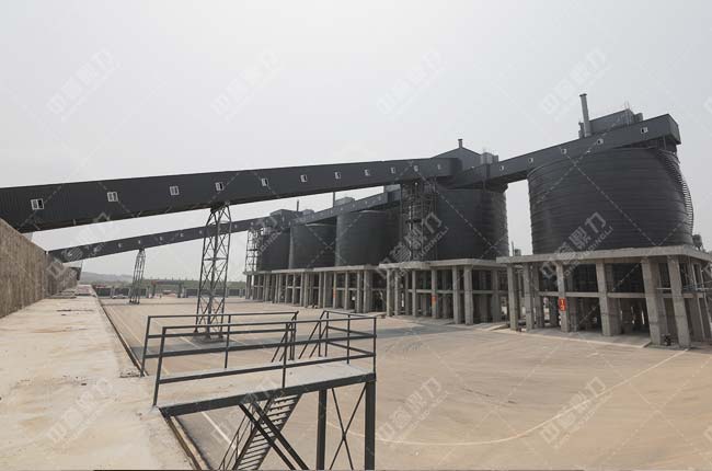 4、圓形儲料倉對面設有成品料緩沖庫,通過輸送機送至各自成品料平庫內(nèi),可實現(xiàn)淡季存料、旺季銷售,節(jié)省轉運費用,避免用料高峰期無料可尋。