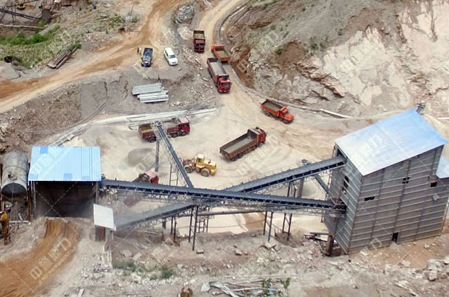 利用地形落差,破碎篩分后的成品料經(jīng)過管道直接落到成品料堆,節(jié)省輸送帶方面的投資;