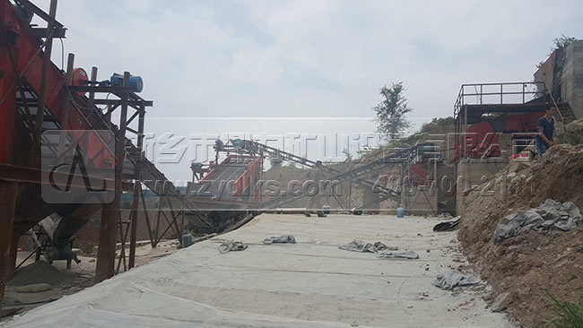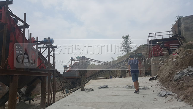 從生產(chǎn)現(xiàn)場我們可以看到,此條日產(chǎn)1500噸砂石料生產(chǎn)線部都是選用我們公司的設備,原料和成品料之間部都是用皮帶輸送機傳輸?shù)模a(chǎn)流程是流暢,可以自動化的將成品料生產(chǎn)出來,減少了使用額外附加設備的幾率。