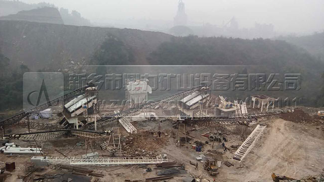 此條時產600噸砂石料生產線主要包括2臺重錘破、11臺篩分設備、2臺ZSJ1218制砂機,并且配備有完備的中轉倉和環(huán)保除塵設備,設備產能是比較大,預計設計的產能是500噸,在實際的生產中達到了600-700噸,生產效果良好。