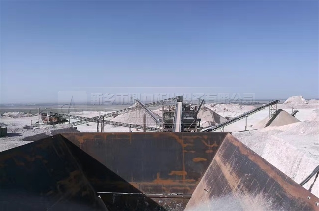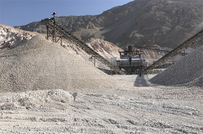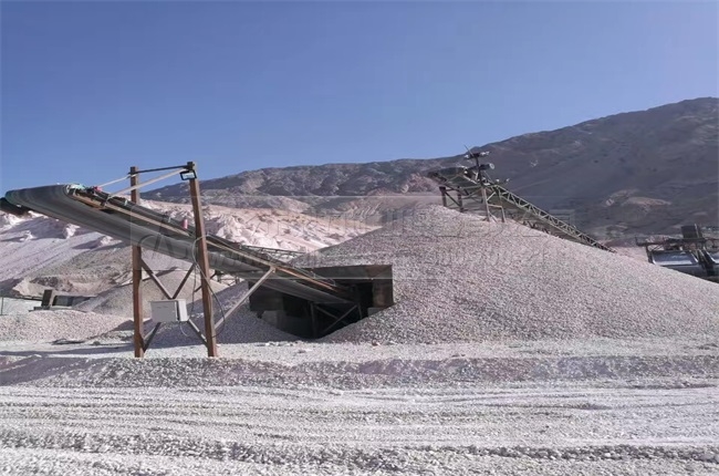 與純石灰?guī)r相比,化工石灰?guī)r含鈣量較高,一般呈致密塊狀產(chǎn)出,顏色常為灰白、淺灰、灰色、深灰及淺黃、淺紅等,一般采用露天開采,電鏟汽車皮帶運(yùn)輸,選礦采用破碎篩分方法。在這條時產(chǎn)500噸破石子生產(chǎn)線圖片中我們可以看到,石灰石被均勻的輸送到入料倉內(nèi),依次經(jīng)過振動給料機(jī)、破碎機(jī)、振動篩加工處理成客戶需要的石子規(guī)格。