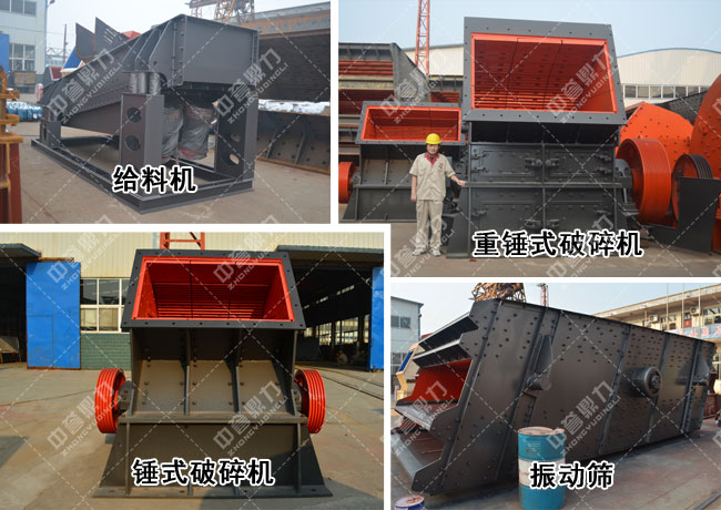破碎生產(chǎn)線的流程大致為:(料倉) ---- 給料機(jī) ---- 重錘式破碎機(jī) ---- 錘式破碎機(jī) ---- 振動篩 ---- (可成成品)。其中間的機(jī)器之間可用輸送機(jī)相接。
