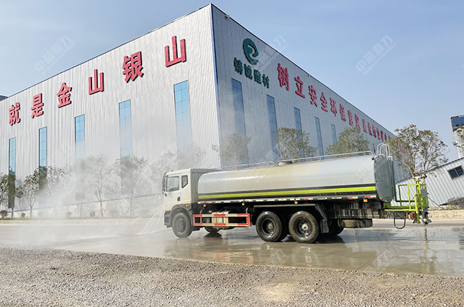 這條年產(chǎn)200萬噸環(huán)保智能砂石骨料生產(chǎn)線從破碎、輸送、篩分、儲(chǔ)存,各環(huán)節(jié)均采用封閉式結(jié)構(gòu),收塵管道布置于系統(tǒng)各處揚(yáng)塵點(diǎn),避免粉塵外溢,實(shí)現(xiàn)環(huán)保生產(chǎn)。此外,灑水車也在進(jìn)行不間斷灑水,將環(huán)保措施落實(shí)到位。